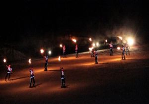 Kars’ın Sarıkamış ilçesinde, 1915 yılının Aralık ayında Allahu Ekber Dağları'nda donarak şehit olan askerleri anma programları kapsamında meşaleli kayak gösterisi yapıldı.