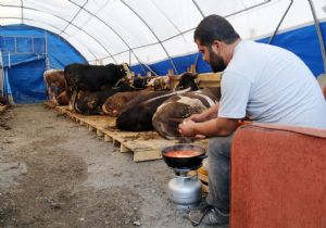 Kurban Bayramı dolayısıyla yurdun farklı noktalarından gelen besiciler, Sultangazi'deki kurban satış ve kesim alanında gece gündüz hayvanlarının başında nöbet tutuyor. Hayvanlarıyla aynı çadırda uyuyup yemek yiyen satıcılar, günün yorgunluğunu demli çayla atıyor.