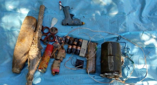 Ele geçirilen malzemelerin, “1 adet mühimmat harp başlığı tadil edilerek düzenlenmiş EYP, 1 adet ALFA/FİRE alıcı devresi,1 adet ALFA/FİRE verici devresi, 1 adet 8’li pil bloğu, 4 m akım taşıyıcı kablo, 1 adet Antitank Roketatar mühimmatı, 1 adet 120 mm çapında Topçu Mühimmatı” olduğu aktarıldı.