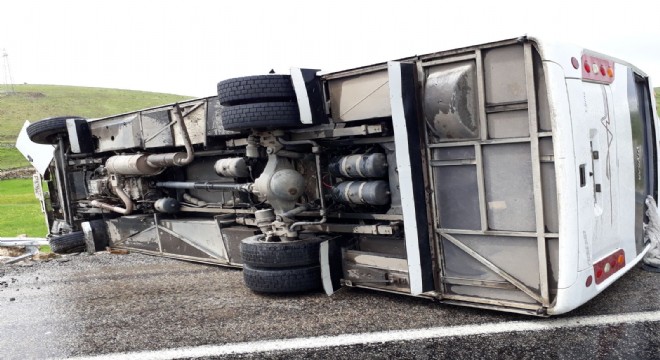 Bingöl'de yolcu midibüsü, yağış nedeniyle kayganlaşan yolda sürücüsünün direksiyon hakimiyetini kaybetmesi sonucu devrildi. 22 kişi yaralandı.