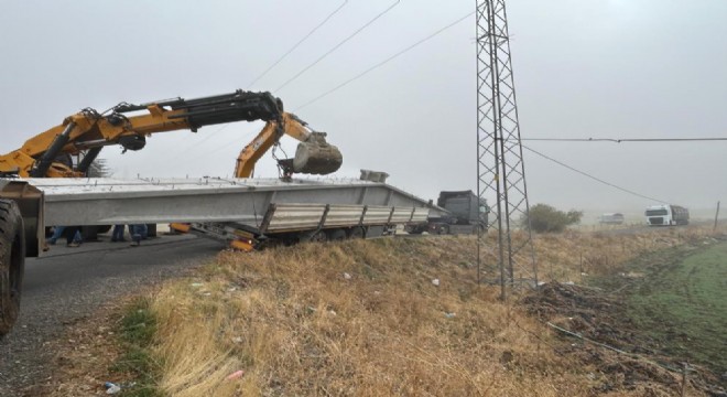Bingöl'de çiftlik için çatı bloğu taşıyan tır, virajı alamayınca yan yattı. Yaralananın olmadığı kazada, maddi hasar meydana geldi.