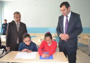 Okulda eğitim gören iki görme engelli öğrenci Kader Güler ve Nazlıcan Aytekin, İl Müdürü Abdulhakimoğulları’na engellilere yapılan hizmetlerden dolayı teşekkür ederek, çiçek takdim ettiler.