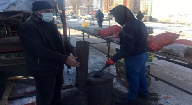 Açık havaya kurdukları soba ile ısınan pazarcı esnafı, “Erzurum’da hava şartları ağırlaştı iyice. Soğuk havalar kışın olumsuz yönlerinden biri. Gece eksi 40’ı buluyor gündüz de 17-18 arası değişiyor. O yüzde soba kurup ısınıyoruz hem de mal satıp eve ekmek götürmeye çalışıyoruz” şeklinde konuştu.