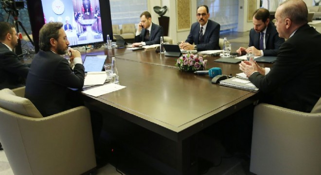 Cumhurbaşkanı Recep Tayyip Erdoğan, Bilim Kurulu üyeleriyle telekonferansla yaptığı görüşmede, “Milletimizle gönül ve işbirliği içinde inşallah bu musibetinde üstesinden geleceğiz. Bu güne kadar terörden darbeye ve ekonomik saldırıya kadar nice sıkıntıyı birlik ve berberlik içinde aşan Türkiye Allah'ın izni ile virüs meselesini çözecektir. Yeter ki kurallara uyulmasını temin edelim ve metanetimizi koruyalım” dedi. Cumhurbaşkanı Recep Tayyip Erdoğan, Bilim Kurulu üyeleriyle bir telekonferans yöntemiyle görüşme gerçekleştirdi.