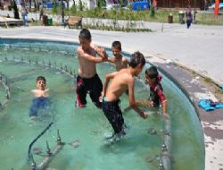 ERZURUM (İHA) - Erzurum’da Ramazan ayı ile birlikte hava sıcaklıklarındaki artış vatandaşı bunaltıyor. Hava sıcaklığının 30 dereceyi bulduğu kentte çocuklar belediyenin yaptığı süs havuzlarında serinlemeye çalışıyor. Çocukların süs havuzlarında yıkanması hem hijyen açısından tehlike arzederken, aynı zamanda kent meydanında köy görüntüsü sergilenmesine yol açıyor.