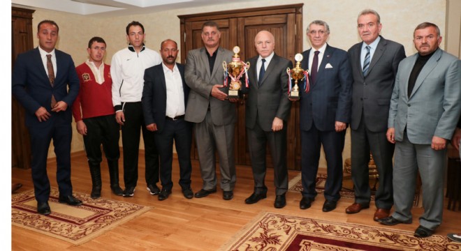 Geleneksel Spor Dalları Federasyonu Başkanı Prof. Dr. Alpaslan Ceylan, Ankara 75. Yıl Hipodromu’nda düzenlenen yarışlarda şampiyon olan Erzurum ekibi ile Erzurum Büyükşehir Belediye Başkanı Mehmet Sekmen’i makamında ziyaret etti.
