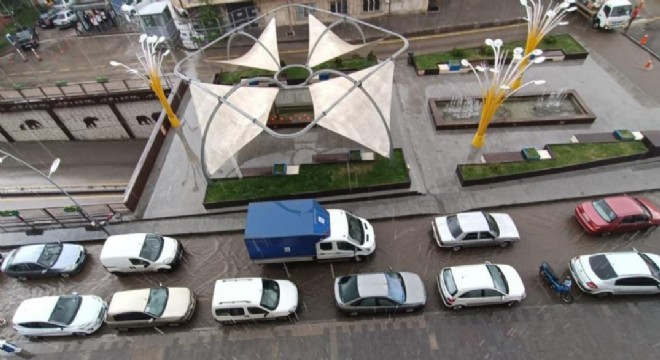 Erzurum’da aniden başlayan sağanak yağış nedeniyle caddeler göle döndü. Saniyeler içerisinde göle dönen caddelerde araçlar güçlükle ilerledi.