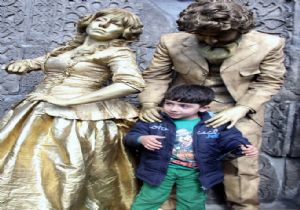 Canlı heykeller çocukların ilgi odağı oldu