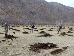 Aytekin Çalık, Mart ayının gelmesi ile birlikte bağ bahçe işlerinin de başladığını ifade ederek, “Bahar yağmurları başlamadan hayvan gübresini çayırlara ve ağaç diplerine döküyoruz. Çayırlar için hayvan gübresi daha faydalı oluyor” dedi.