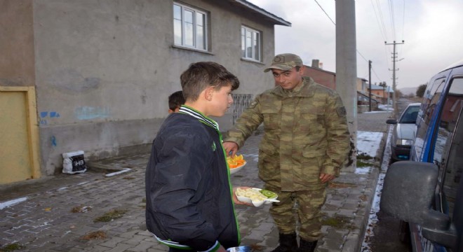 Havanın soğuk olmasından dolayı çocuklar, asker ağabeylerine önce çay sonrasında da evlerinde kendi elleriyle hazırladıkları meyveleri ikram etti. Kendilerinin de ileride bu kutsal görevi seve seve yapacaklarını belirten çocuklar, "Şu anda bizlerin vatanımızda, memleketimizde ve evlerimizde rahat rahat korkmadan güven içinde yaşıyorsak bu asker ağabeylerimiz sayesinde. Allah nasip ederse bizler de sıramız geldiğinde bu kutsal görevi seve seve yapacağız. Anne, babamız bizlere asker ocağı demek peygamber ocağı demek olduğunu her seferinde söyleyip bizlere vatan sevgisini aşılıyorlar. Belki biz de gittiğimiz başka şehirlerde askerlik yaptığımızda bizlere de oranın insanları ikramlarda bulunur. Hem bizler misafirperver insanlarız" diye konuştu.