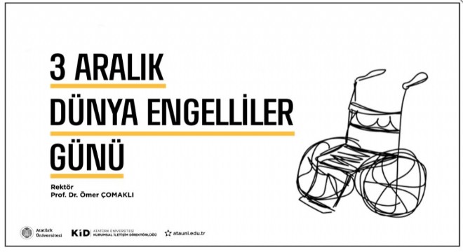 Atatürk Üniversitesi Rektörü Prof. Dr. Ömer Çomaklı, 3 Aralık Dünya Engelliler Günü münasebetiyle bir mesaj yayımladı. Rektör Çomaklı mesajında şu ifadelere yer verdi:?Her insan istediği gibi hareket edebildiği, bedeninin, zihninin, maddi ve manevi varlığının engellere mahkûm olmadığı bir hayat sürdürmek ister. Oysa hayatın içinde zorluklar, yoksunluklar ve engeller vardır.
