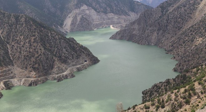 Türkiye'nin en hızlı akan nehri olan Çoruh'un üzerinde yapılan Deriner Barajı gölü yeşile büründü.