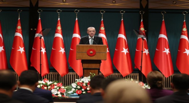 Cumhurbaşkanı Recep Tayyip Erdoğan, Cumhurbaşkanlığı Külliyesinde gerçekleştirilen Cumhurbaşkanlığı Kabinesi Toplantısı’nın ardından basın açıklaması yaptı.