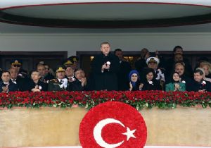 "Millet olarak gerçekten çok zor şartlarda kurduğumuz Türkiye Cumhuriyeti'ni muasır medeniyetler seviyesinin üzerine çıkarmak için 92 yıldır mücadele ediyoruz" diye konuşan Erdoğan, "Türkiye'yi bölgesinin ve dünyanın en önemli ülkelerinden, yükselen yıldızlarından biri haline getirdik. Bugün ülkemiz hamd olsun, tüm mazlumların, mağdurların ümidi haline geldi. Öte yandan birlik, beraberlik, kardeşlik içinde verdiğimiz demokrasi ve kalkınma mücadelesinden rahatsız olanlar her dönemde önümüze engeller çıkarmışlardır. Şartlar ne olursa olsun, tarihe geçen bir İstiklal mücadelesi ile kurduğumuz, Cumhuriyetle taçlandırdığımız devletimize yönelik her türlü tehdidin üstesinden gelecek güce, imkana ve kararlılığa sahibiz" ifadelerini kullandı.