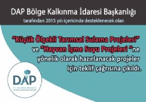 DAP Bölge Kalkınma İdaresi Başkanlığı tarafından 2015 yılı içerisinde desteklenecek olan “Küçük Ölçekli Tarımsal Sulama Projeleri” ve “Hayvan İçme Suyu Projeleri ”ne yönelik olarak hazırlanacak projeler için teklif çağrısına çıkıldı.