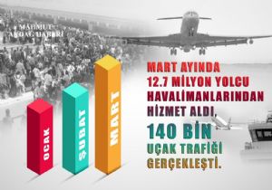 DHMİ Genel Müdürlüğü tarafından açıklanan 2016 yılı Mart ayı İstatistiklerine göre; Türkiye geneli Havalimanlarından Mart ayında hizmet alan yolcu sayısı 12,7 milyon oldu. Yolcu, uçak, yük trafiğinde artışın devam ettiği 3 aylık dönemde toplam yolcu sayısı 36,5 milyona ulaştı.