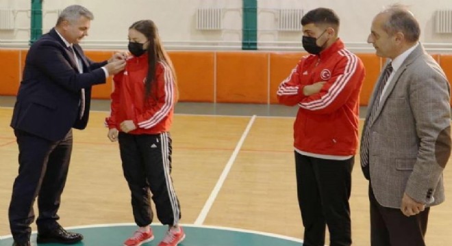 Hafta sonu Erzurum'da düzenlenen Türkiye Tekerlekli Kızak Şampiyonası'nda birinci olan Devlet Su İşleri (DSİ) sporcuları Aybüke Büyükpolat ile Alper Keleş, DSİ 8'inci Bölge Müdürü Oğuzhan Yavuz tarafından altınla ödüllendirildi.