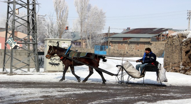 Şadırvanların buz tuttuğu, mazotlu araçların takviye yöntemiyle çalıştırıldığı Erzurum’da üç arkadaş atlı kızaklarla karlı araziye açılıp, kar üzerinde patates közlemesi yaparak kış aylarını keyfe dönüştürdü.