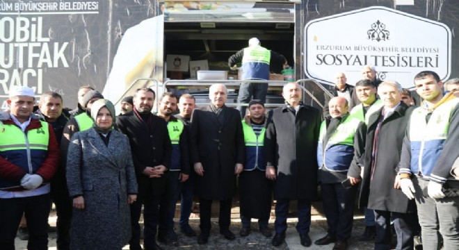 Büyükşehir’in 50 bin kişilik yemek çıkarma kapasitesine sahip mobil mutfağı, AK Parti Genel Başkanvekili Numan Kurtulmuş, Adalet Bakanı Abdulhamit Gül ve AK Parti Genel Merkez Yerel Yönetimler Başkan Yardımcısı Mücahit Yanılmaz’dan da tam not aldı. Kurtulmuş, Gül ve Yanılmaz, beraberindeki partililerle birlikte ziyaret ettikleri mobil mutfakta, depremzedelere yemek ikramında da bulundu. Elazığ’a ulaştığı günden bu zamana kadar tam kapasite çalıştırılan ve günde üç öğün yemek çıkartılan mobil mutfakta, yine Erzurum Büyükşehir Belediyesi’nin birbirinden usta aşçıları görev yapıyor.