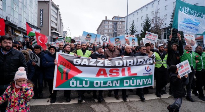 İsrail’in Gazze’de devam ettirdiği insanlık dışı saldırıları ve vahşeti protesto etmek için Erzurum’da binlerce vatandaş yürüyüş yaptı, slogan attı ve zulmün bitmesi için hep birlikte dua etti.