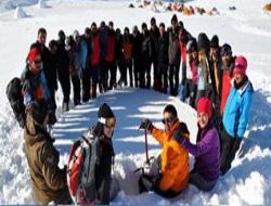 ERZURUM (İHA) - Türkiye Dağcılık Federasyonu (TDF) tarafından Erzurum Konaklı Kayak Merkezinde düzenlenen 'İleri Seviye Kış Gelişim ve Eğitim Kampı' sona erdi. Türkiye’nin çeşitli illerinden gelen dağcılar Konaklı da kar kalınlığının yaklaşık 3 metreyi bulduğu alanda kamp yaptılar. Dağcılar kampta 10 antrenör eşliğinde çığ, krampon kullanma, karda ve buzda emniyet alma teknikleri gibi uygulamalı dersler gördü. Dağcılar kampta geceyi kar ve buz üzerine kurdukları çadırlarla, iglolar da geçirdiler. Türkiye Dağcılık Federasyonu Başkanı Alaattin Karaca, 86 sporcunun 10 antrenör tarafından eğitildiğini belirtti. Kampta dağcılara, karakışta hayatta kalma dersi verildiğini ifade eden Karaca, "Dağcılar, kış koşullarında beslenme, barınma, hayatlarını sürdürme dersleri aldı. Sporcular ısının sıfırın altında 40 dereceye kadar düştüğü gecelerde iglo ve bireysel çadırlarında kaldı. Beslenmek için zaten her dağcı altı günlük kumanyasını yanında getirdi. Kendi çadırında kendi pişirdiği yemeklerle beslendiler. Diğer ihtiyaçlarını da doğa koşullarında nasıl karşılaması gerektiği öğretildi. Ayrıca her kursiyer, en az bir gece çadırından çıkarak iglo da geceledi. Sporcularımızı doğada karşılaşacakları zor koşulların üstesinden gelmeleri için hazırladık" diye konuştu.
