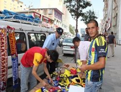 Erzurum’da Süper Kupa maçı öncesinde Cumhuriyet Caddesi üzerinde açtıkları tezgahlarda Fenerbahçe ve Galatasaray Spor Kulüplerinin forma, bayrak ve flamalarını satan işportacıların tezgahları zabıta ekiplerince toplandı.