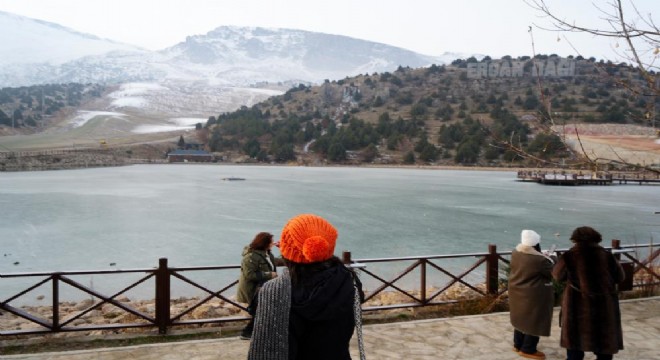 Yüksek kesimlerde hava sıcaklığının sıfırın altında 10 dereceye kadar düştüğü kentte, 2 bin 970 rakımda ve Munzur Dağları’nın eteğinde yer alan Ardıçlı Gölü’nün yüzeyi tamamen buz tuttu. Derinliği yaklaşık 5 metre olan göl, kışın etkisiyle kartpostallık görüntüler oluştururken, bölgeyi ziyaret eden vatandaşlar manzaranın eşsiz olduğunu ifade etti. Ergan Dağı Kayak Merkezi’nin hemen yanında yer alan göl, fotoğraf tutkunlarının da uğrak noktası haline geldi. Ardıçlı Gölü’ndeki kış güzelliği havadan görüntülendi.