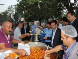 BİNGÖL (İHA) - Kalkınma Bakanı Dr. Cevdet Yılmaz, Bingöl Belediyesi İftar Çadırı’nda vatandaşlarla birlikte orucunu açtı. Ramazan ayının 5. gününde Kalkınma Bakanı Dr. Cevdet Yılmaz, Bingöl Milletvekili Prof. Dr. Eşref Taş, Bingöl Valisi İbrahim Taşyapan ve Bingöl Belediye Başkanı Serdar Atalay, Ankara Büyükşehir Belediyesi İlköğretim Okulu’nun bahçesinde kurulan Belediye İftar Çadırı’nda vatandaşlarla birlikte iftarlarını açtı. Bingöl Belediyesi’nce her yıl Ramazan ayında şehir merkezinde ihtiyaç sahiplerine ve yolda kalmışlar için açılan iftar çadırına gelen Kalkınma Bakanı Yılmaz, vatandaşlarla birlikte iftarını açtı. Tavuk kızartma, pilav, mercimek çorbası ve hurmadan oluşan menüden yiyen Yılmaz, Bingöl’de Ramazan ayının çok güzel geçtiğini söyledi. Ramazan ayında Bingöl’de manevi atmosferin doruğa çıktığına vurgu yapan Bakan Yılmaz, şöyle konuştu: “Ramazan ayının; Bingöl’e, ülkemize ve İslam alemine hayırlar getirmesini temenni ediyorum. Ramazan, çok değerli bir ayımız. Manevi değerlerimiz içinde çok farklı bir yeri var. Ramazan, bir taraftan Kur’an-ı Kerim’in indiği ay diğer taraftan Peygamber Efendimiz’e (s.a.v.) vahyin indiği aydır. Her yönüyle çok değerli bir ay."