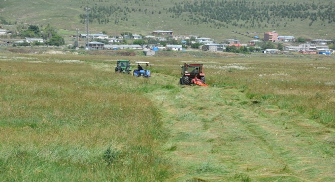 Kentte sabahın erken saatlerinde çalışmaya başlayan çiftçiler, akşam saatlerine kadar çalışmalarını sürdürüyor. Sıcak havaya aldırış etmeden güneş altında hayvanlarının kışlık yem hazırlığını yapan çiftçiler, otları da patozlayarak samana çeviriyor.