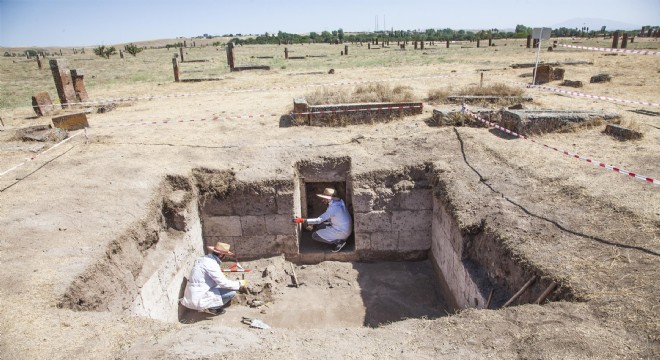 Bu mezarları Orta Asya'daki kurganların ve yeraltı mezarların Anadolu'daki bir devamı olarak gördüklerini ifade eden Karahan, "Ama İslami usullere dönüşmüş bir geleneğin devamıdır. Orada mezarlar belli bir düzene göre kurulurken buradaki mezarlar İslami usullere göre defnedilmiş. Kafatasları ve gömülüş yönleri bunu gösteriyor. Bir geleneğin devamı olarak Ahlat'ta yaşatılmış. Daha sonra da Anadolu Selçuklularında ve Osmanlı'da kümbet ve türbe şeklinde devam etmiş. Bu kripta dediğimiz yer altındaki cenazenin olduğu kısmı bu akıtlar temsil ediyor. Daha sonraki dönemlerde bunun üzerini bir mescit şekilde, kıble yönünü belirtecek hafif mihrabı olan üst kısımlarda yerleştirilmiş daha sonra da böyle devam etmiş. Bunun örneklerinden birini Ahlat'taki Emir Bayındır Kümbeti'nde görebiliyoruz. Orada yer altında kripta dediğimiz, mumyalık ya da cenazelik kısmı üzerinde de mescide benzer bir örtü sistemi bulunmaktadır. Burada arka kısımda görmüş olduğunuz şu kapı şeklindeki kısım cenaze yerleştirildikten sonra burayı terk ederken oraya bir kapı yapılıyor ve bu kapı büyük bir taşta olabiliyor. Genellikle kapılar eğilerek girmek için basık yapılmış bu da ölüye olan saygıdan dolayıdır. Buda İslami usullere göre olan bir anlayıştan kaynaklanmıştır. Burada örülmüş olan bir kapıya denk geldik. Sağlam bir şekilde günümüze kadar gelmiş. Devamına bakacağız. Nereye açılır, başka bir kapısı var mı, başka yere açılır mı gibi soruların cevabını da yapacağımız çalışmalar sonunda ortaya çıkartmaya çalışacağız" şeklinde konuştu.