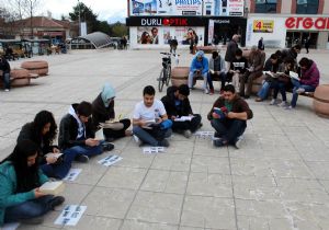 MEYDANDA YERE OTURUP KİTAP OKUDULAR
