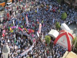 Cuma namazı sonrası Hz. Ömer Camii önünde Müslüman Kardeşlerle Dayanışma İnisiyatifi öncülüğünde bir araya gelen kalabalık bir grup, Mısır’da yaşanan katliama tepki gösterdi. Sık sık tekbirlerin getirildiği gösteride, ABD ve İsrail ile Sisi protesto edildi. Kimi vatandaşların gözyaşlarına hakim olamadığı gösteride, hayatını kaybeden darbe karşıtları için dua edildi.