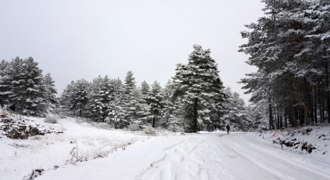 Erzincan’ın Kemah ile Refahiye ilçeleri arasında bulunan 1900 rakımlı Tekçam Geçidi, yağan karın ardından beyaza bürünen zemin ve çam ağaçlarıyla görsel şölen oluşturdu.