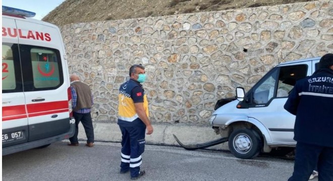 Erzurum-Bayburt karayolunda seyir halindeki minibüs, sürücüsünün direksiyon hakimiyetini kaybetmesi sonucu yol kenarındaki duvara çarparak durabildi.