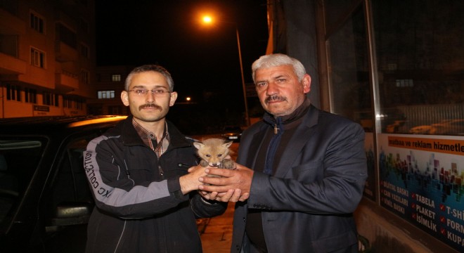 Oltu Karabekir Mahallesindeki Rus Kilisesinin yanından geçerken yol kenarında rastladığı yavru tilkiyi Milli Parklar görevlisine teslim etti.