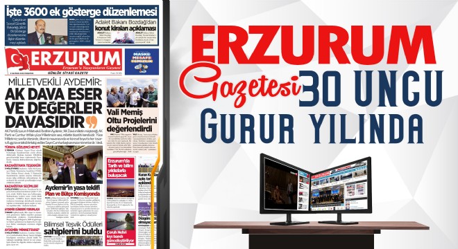 Türkiye’nin ilk yerel internet gazetesi olan Erzurum Gazetesi 30’uncu gurur yılını idrak ediyor. 8 Haziran 1992 yılında yayın hayatına başlayan, geniş, bilinçli ve dadaşlık şuuruna yüreğini teslim eden bir okur kitlesine sahip olan gazete, tüm kurucuları, köşe yazarları ve muhabirleriyle, Erzurumluluk ruhuna uygun edep, terbiye ve disiplin içerisinde 30’uncu yıla erişmenin mutluluğunu okurlarıyla paylaşıyor.