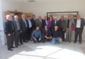 Erzurum Ticaret Borsası Yönetim Kurulu Başkanı İsmail Hakkı Hınıslıoğlu, Meclis Başkanı Mehmet Akgün, Yönetim Kurulu üyeleri ve Meclis Üyelerinden oluşan heyet, Çanakkale Ticaret Borsası Başkan yardımcısı Gökhan Uysal, Yönetim Kurulu Sayman Üyesi Zakir Tanrıkulu, Meclis Üyesi Melih Gündoğdu ve Genel Sekreter Sevcan Elver’le görüştü. Çanakkale Ticaret Borsası Yönetim Kurulu Başkan Yardımcısı Gökhan Uysal, “2015 Çanakkale Savaşlarımızın 100. Yılı hem Çanakkale’miz hem de ülkemiz için çok özel bir yıl. Çanakkale Ticaret borsası olarak bizler ülkemizdeki borsalarımızı bu özel yılda ilimize, borsamıza davet ettik. Bugünde Erzurum Ticaret Borsamız ile birlikte olduk. Ziyaretleri bizleri ziyadesi ile memnun etti. Çanakkale Ticaret Borsamızın çalışmaları hakkında bilgiler verdik. Kendileri ile karşılıklı fikir alışverişi ve bilgilendirmelerde bulunduk” dedi. Ziyaretin sonunda Uysal, Erzurum Yönetim Kurulu Başkanı İsmail Hakkı Hınıslıoğlu’na ziyaretin anısına Çanakkale’ye özgü Troia figürlü Serak Tabak ve yöresel ürünler hediye etti.