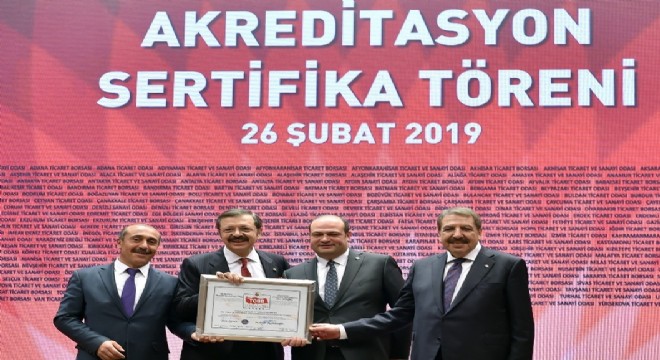 Törende daha sonra odaların akredistasyon sertifikaları dağıtıldı. ETSO’nun ‘5 Yıldızlı Oda’ sertifikasını Yönetim Kurulu Başkan Yardımcısı Hüseyin Polat, TOBB Başkanı Rifat Hisarcıklıoğlu ve Başkan Yardımcısı Faik Yavuz’un elinden aldı. Oltu Ticaret ve Sanayi Odası Yönetim Kurulu Başkanı Baki Karaca da törende hazır bulundu.