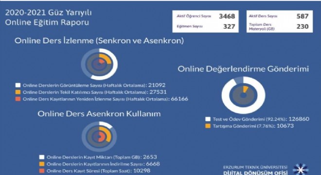 Erzurum Teknik Üniversitesi senatosunun, online eğitimde aktif öğrenmeyi önceleyecek şekilde dönem içi değerlendirme sayısının minimum 4 olacak şekilde karar alması, öğrenci etkileşimini önemli derecede artırdı. Ayrıca derslere katılımın tüm haftalarda sabit bir oranda olduğu da görülüyor.
