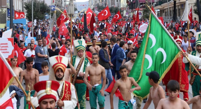 Korteje katılan Erzurumlular, 15 Temmuz Demokrasi Destanımızın kahramanlarının adını taşıyan tişörtleri giyerek yürüyüşe katıldı. Erzurum Büyükşehir Belediye Başkanı Mehmet Sekmen, ay yıldızlı tişörtüyle korteje katılarak etkinliğe start verdi. AK Parti Erzurum Milletvekili Orhan Deligöz, Vali Yardımcısı Ayhan Terzi, AK Parti Erzurum İl Başkanı Mehmet Emin Öz ve diğer yetkililerin katıldığı yürüyüş, renkli görüntülere sahne oldu. Yürüyüşte, 15 Temmuz gecesi hain darbe girişimi karşısında canını vatan toprağına feda ederek, terörist başı FETÖ ve postallı satılmışlara geçit vermeyen kahramanlarımızın aziz ruhlarına dualar okundu. Narmanlı Camii önünden başlayan kortej yürüyüşü, Havuzbaşı Kent Meydanı’nda sona erdi. Başkan Sekmen, kortejde vatandaşları selamladı. Sekmen, burada gazetecilere yaptığı açıklamada, “Bu yıl dördüncüsünü düzenlediğimiz Uluslararası Altın Kemer Karakucak Güreşleri Kortej Yürüyüşü’nde üzerimizde ay yıldızlı bayrağımız ve şehitlerimizin adını taşıdık. Onlar vatanımız, milletimiz ve demokrasi için Hakk’a yürüdü. Kahramanlarımızı asla unutmadık ve unutmayacağız” dedi. Bu arada Başkan Sekmen, tüm sporseverleri 9 Temmuz Pazar günü Olimpiyat Parkı Erzurum Güreş Stadı’nda yapılacak olan 4. Uluslararası Altın Kemer Karakucak Güreşleri’ne davet etti.