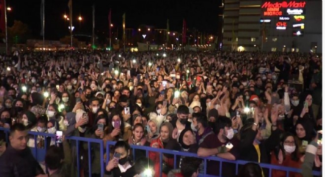Erzurum’da konser veren ünlü şarkıcı Ekin Uzunlar, şarkılarıyla gençleri coşturdu. Konserde maske takmayan çok sayıda genç mesafe kuralına da uymadı