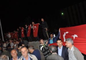 Ak Parti İlçe Başkanı Aytekin Arslan konuşmasında, "Maalesef göz bebeğimiz ordumuzun içerisinde yuvalanmış bir takım kendini bilmezlerin akıl tutulması sonucu gerçekleştirdikleri kalkışmayı izliyoruz. Bu millet devletine Cumhurbaşkanına parlamentosuna bu güne kadar nasıl sahip çıktıysa bundan sonrada öyle sahip çıkacaktır" dedi.