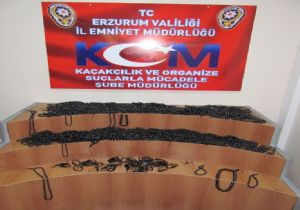 Erzurum Emniyet Müdürlüğünden yapılan açıklamada, “KOM Şube Müdürlüğümüz görevlilerince ilimiz genelinde kaçakçılık faaliyetlerinin önlenmesine yönelik yapılan çalışmalarda; İ.G. isimli şahsın Gürcükapı Hasırhan Pasajı önünde tedirgin hareketler sergilemesi üzerine, KOM şube görevlilerimizce şahsın çantasında ve tezgahında yapılan aramada değişik ebatlarda kaçak 330 adet tespih, 40 adet bileklik, 10 adet kolye ve 85 adet imame (tesbih imamesi) ele geçirildi. Murat Paşa Mahallesi Çarşı Sokak üzerinde elinde bir adet kargo kolisiyle bekleyen M.T. isimli şahsın durumundan şüphelenilerek şahıs bir süre takip edilmiş, şahsın şüpheli hareketlerinin devam etmesi üzerine görevli ekiplerimizce M.T. isimli şahıs durdurulmuş, yapılan aramada elinde bulunan kargo kolisi içerisinde 10 adet Samsung S4 ve 5 adet Samsung Note 3 Marka olmak üzere toplam 15 adet kayıt dışı kaçak cep telefonu ele geçirilmiştir. M.T. isimli şahıs hakkında yasal işlem yapılmıştır. “ denildi