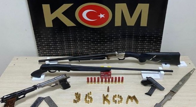 Kars’ta çok sayıda silah ve silahlara ait mühimmat ele geçirilirken, olayla ilgili 2 kişi gözaltına alındı. Kars Emniyet Müdürlüğü Kaçakçılık ve Organize Suçlarla Mücadele Şube Müdürlüğü (KOM) ekiplerince il genelinde yapılan çalışmalar da S.E.’ya ait 1 ikamet ve 1 araçta yapılan aramada, 3 ruhsatsız tabanca, 2 ruhsatsız av tüfeği, 1 kama, 3 şarjör, 58 tabanca fişeği, 1 ak-47 fişeği, 11 av fişeği ve F.Y. (41) üzerinden ise 1 ruhsatsız tabanca, 1 adet şarjör ve 7 fişek ele geçirilerek muhafaza altına alındı.