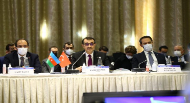 Bölgenin ve Avrupa’nın enerji arz güvenliğine önemli katkılar sunulduğunu belirten Dönmez, “Bilindiği üzere, Bakü-Tiflis-Erzurum (BTE), Bakü-Tiflis-Ceyhan (BTC) ve TANAP gibi büyük altyapı projeleriyle örnek bir iş birliği ruhu ile hareket ederek, bölgemizin ve Avrupa’nın enerji arz güvenliğine önemli katkılar sunduk. Geçtiğimiz yılın şubat ayında, enerji alanındaki zengin iş birliği potansiyelimize bir yol haritası çizmek üzere Türkiye-Azerbaycan Yüksek Düzeyli Stratejik Konsey 8'inci Dönem Toplantısı kapsamında Sayın Cumhurbaşkanlarımızın huzurunda “Enerji ve Madencilik Alanlarında İş Birliği Anlaşması'nı imzaladık. Sonrasında, geçen sene Aralık ayında kıymetli meslektaşım Sayın Şahbazov ile birlikte Iğdır-Nahçıvan Doğalgaz Boru Hattı'nın inşası için bir Mutabakat Zaptı imzaladık. Bu noktada SOCAR ve BOTAŞ’ın çalışmalarını en kısa sürede tamamlamasını arzu ediyoruz. Teknik detaylar hallolduktan sonra, inşallah en kısa sürede bu boru hattını hayata geçirmeyi planlıyoruz. Geçtiğimiz aylarda ise Bakü-Tiflis-Erzurum Hattı’ndan gelecek doğalgaza ilişkin bir anlaşma imzaladık. Bu anlaşmanın bizleri son derece memnun ettiğini bir kez daha belirtmek isterim” diye konuştu.