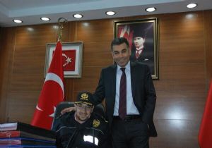 Resmi polis üniforması giyinerek Erzurum Emniyet Müdürlüğünün yolunu tutan fiziksel engelli Yasin Karbuz, İl Emniyet Müdürü Kamil Karabörk’ü ziyaret etti. Sevilen kişiliğiyle Erzurum’un adeta maskotu haline gelen Karbuz’u, Müdür Karabörk kendi makam koltuğuna oturtarak sohbet etti.