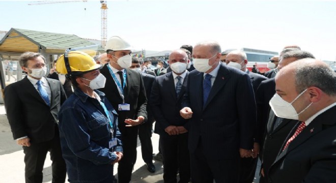 Cumhurbaşkanı Erdoğan, törenin düzenlendiği fabrikaya gelişinde işçiler tarafından karşılandı. Tören öncesi fabrikada kaynakçı önlüğü ve eldiveni giyen, koruyucu gözlük takan Cumhurbaşkanı Erdoğan, Avrupa'ya ihraç edilecek enerji nakil hattına ait bağlantı aparatına kaynak işlemi yaptı. Cumhurbaşkanı Erdoğan, beraberindeki fabrika sahipleriyle kurdele keserek fabrikaların ve altyapı tesislerinin açılışını yaptı.