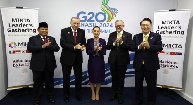 Cumhurbaşkanı Recep Tayyip Erdoğan, Brezilya’da Meksika, Endonezya, Güney Kore, Türkiye ve Avustralya arasındaki gayriresmi istişare ve eş güdüm platformu MIKTA'nın liderleriyle bir araya geldi.
