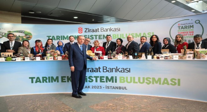Cumhurbaşkanı Erdoğan, Ziraat Bankası Tarım Ekosistemi Buluşması’nda yaptığı konuşmada, “Tahılı, meyvesi, sebzesi, hayvanı başta olmak üzere altında ve üstünde yetişen tüm değerleriyle toprağımıza sahip çıkmanın, onu işleyen çiftçilerimize destek olmanın gayreti içindeyiz” dedi.