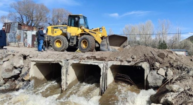 Aşkale'nin Çiftlik Köyünde kar sularının erimesiyle debisi yükselen dere köy yollarını birbirine bağlayan köprüyü yıktı.